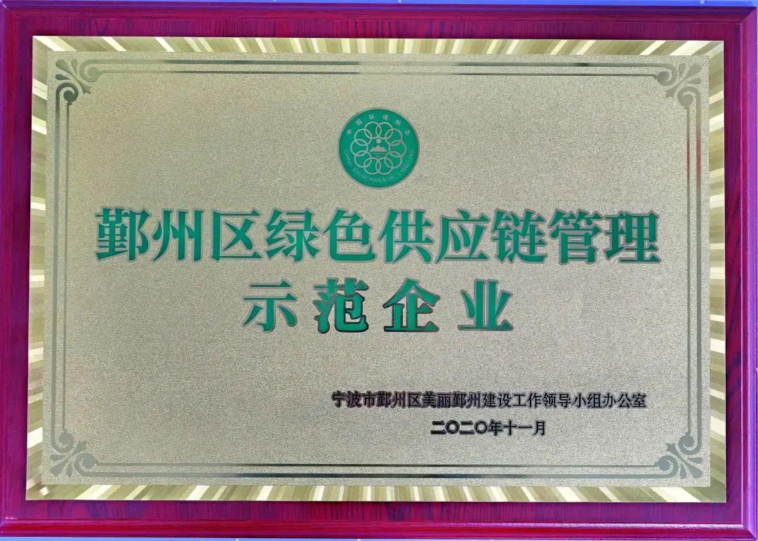 公司榮獲“鄞州區(qū)綠色供應鏈管理示范企業(yè)”榮譽稱號
